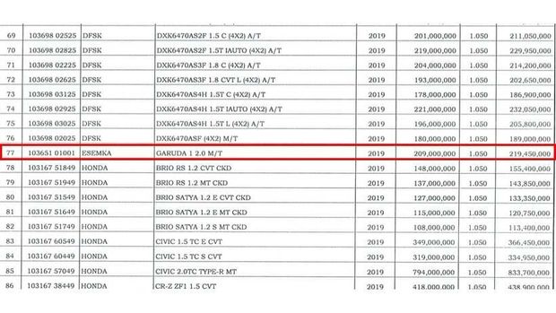 Esemka Garuda tahun pembuatan 2019 tergolong dalam mobil penumpang berjenis minibus punya NJKB Rp209 juta, sedangkan NJKB Esemka Bima dengan jenis pikap cuma Rp 81 juta.